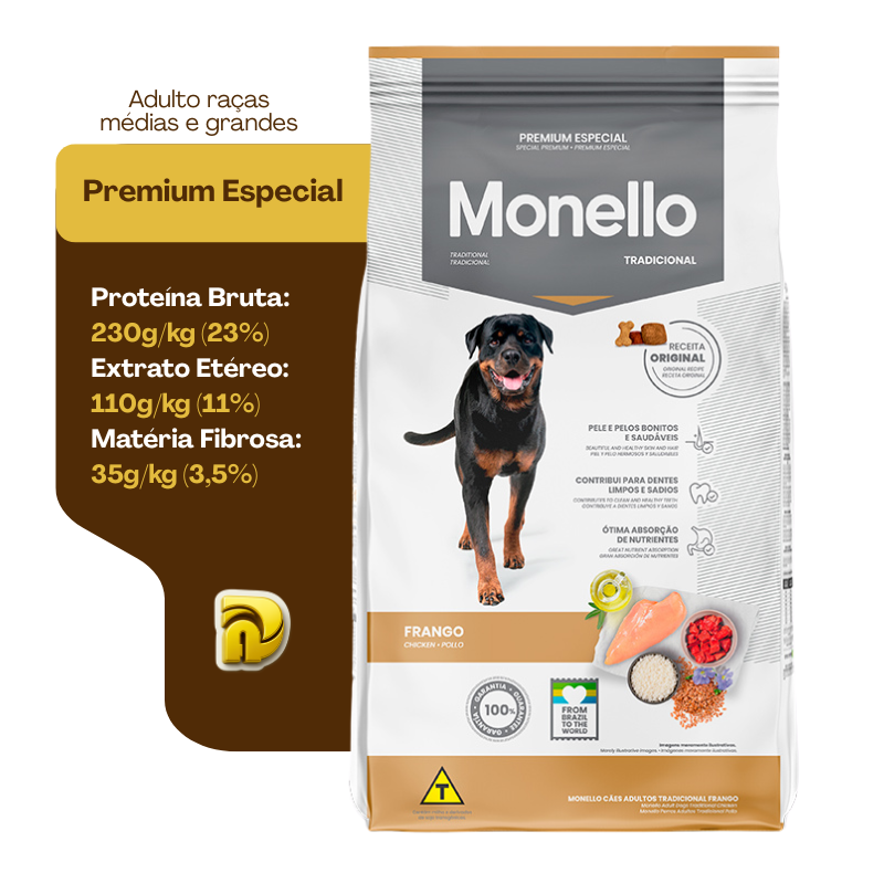 Ração Monello Dog Tradicional - Cães Adultos - Sabor Frango