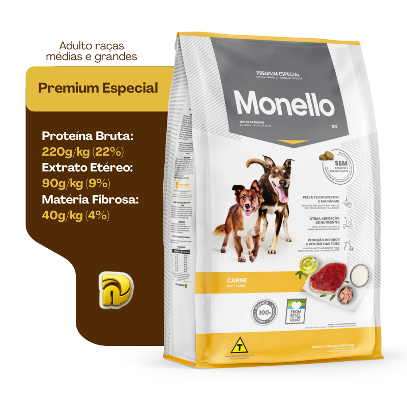 Ração Monello GO - Cães Adultos de Porte Médio e Grande - Sabor Carne