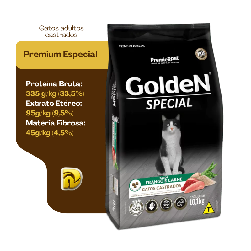 Ração Golden Special Gatos Adultos Castrados Frango e Carne