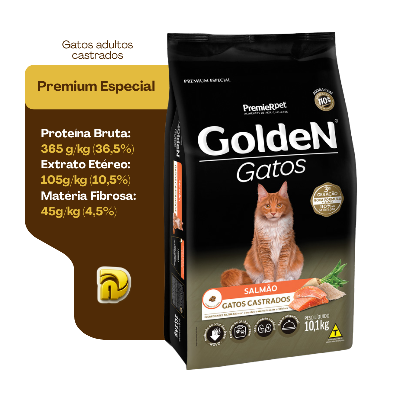 Ração Golden Gatos Adultos Castrados - Sabor Salmão