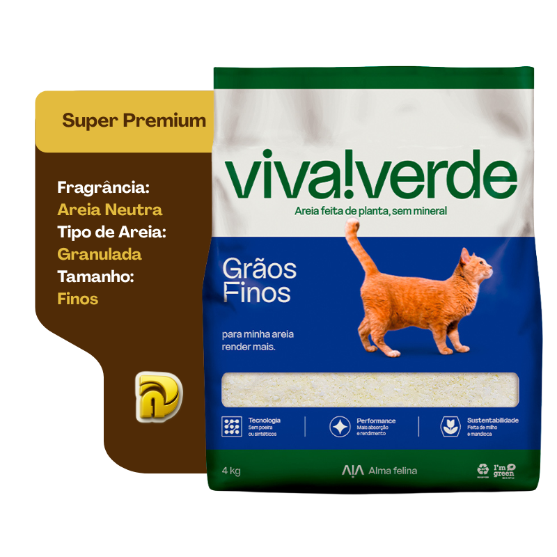 Areia Higiênica Viva Verde Grãos Finos para Gatos