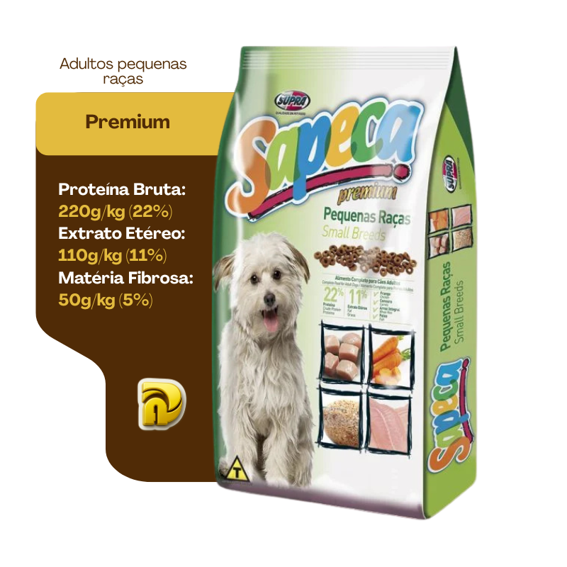 Alimento para cães adultos de pequeno porte com 22% de proteína e 11% de extrato etéreo. Agora livre de corantes!