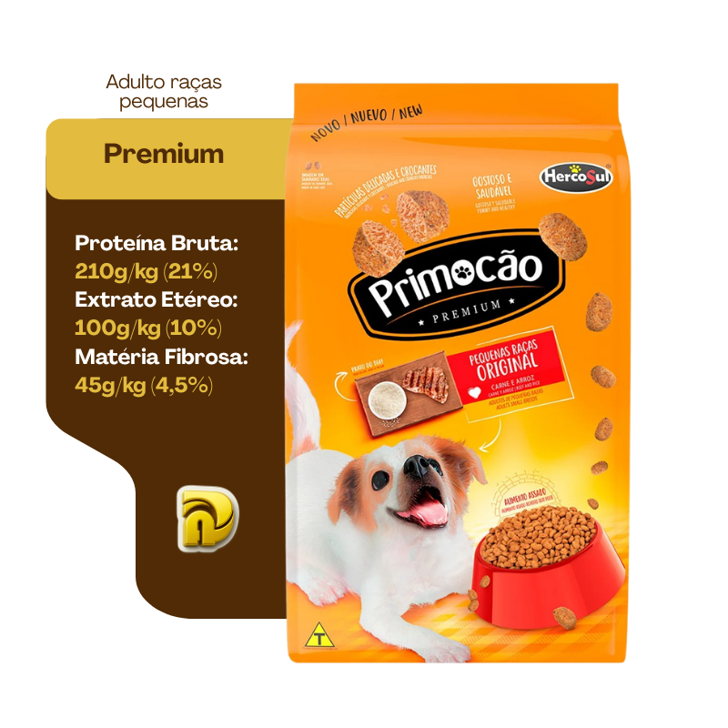 Ração Primocão Original Sabor Carne e Arroz Raças Pequenas para Cães Adultos