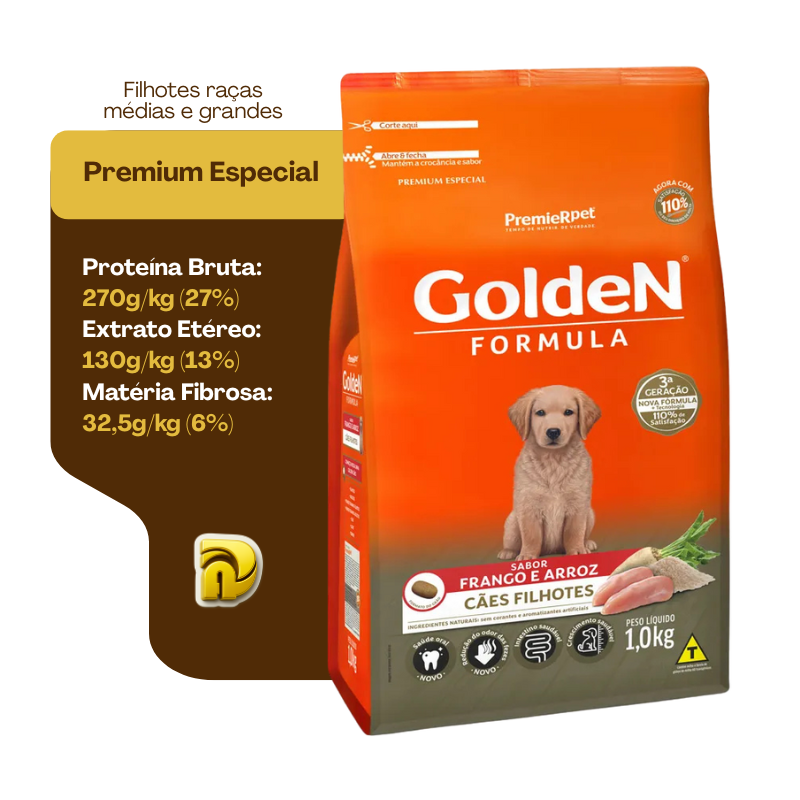 Ração Golden Fórmula Filhotes - Raças Médias e Grandes - Sabor Frango e Arroz
