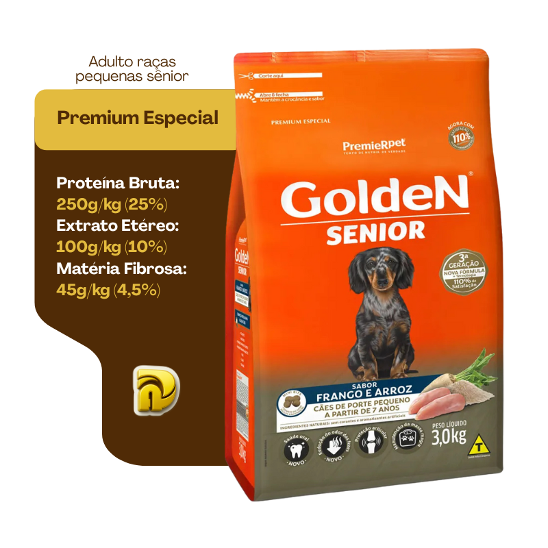 Ração Golden Fórmula Sênior - Adulto Raças Pequenas - Sabor Frango e Arroz