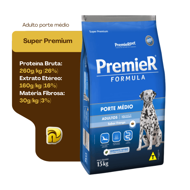 A Premier, referência no mercado nacional, desenvolveu a Ração Premier Formula Cães Adultos Raças Médias com o intuito de oferecer um produto que possa ser a única fonte de alimentação do seu animal.