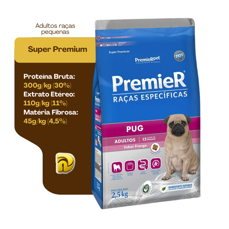 Ração Premier Pet - Raças Especificas Pug - Cães Adultos Porte Pequeno - Sabor Frango