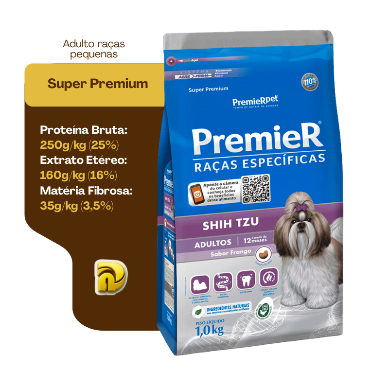 A Ração Premier Shih Tzu sabor frango é um alimento desenvolvido com ingredientes que respeitam às necessidades de raças específicas de pequeno porte. Pertencente à categoria Super Premium, a ração oferece tudo o que o seu animal de estimação precisa para se manter saudável e feliz.