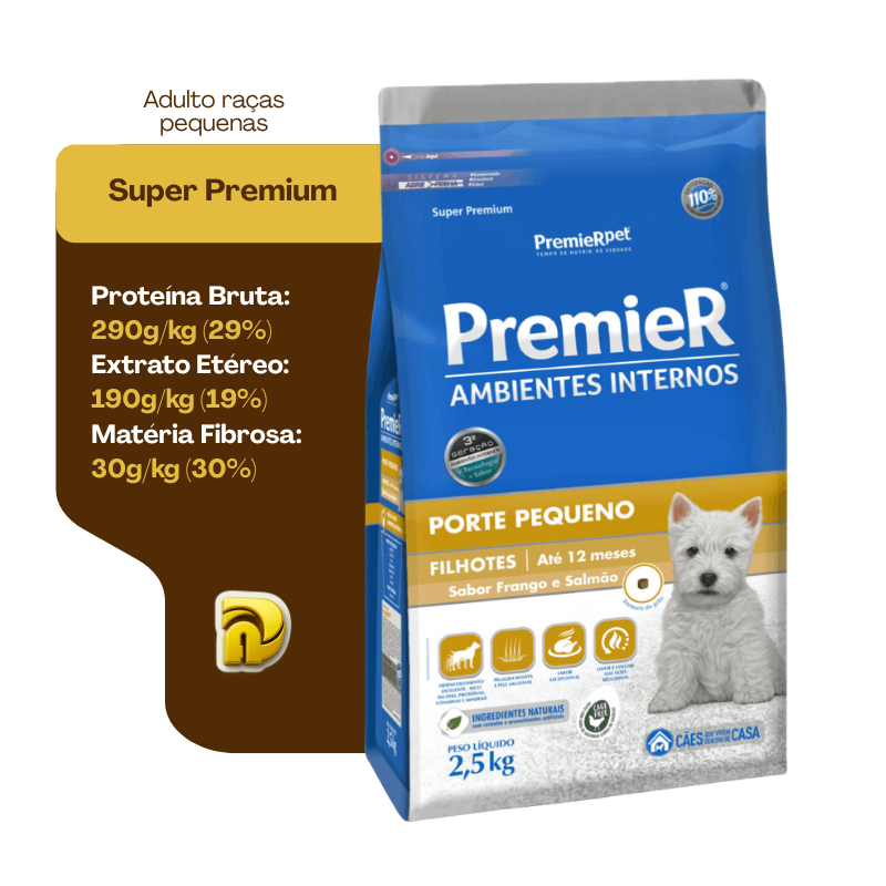 Ração Premier Ambientes Internos Cães Filhotes Raças Pequenas